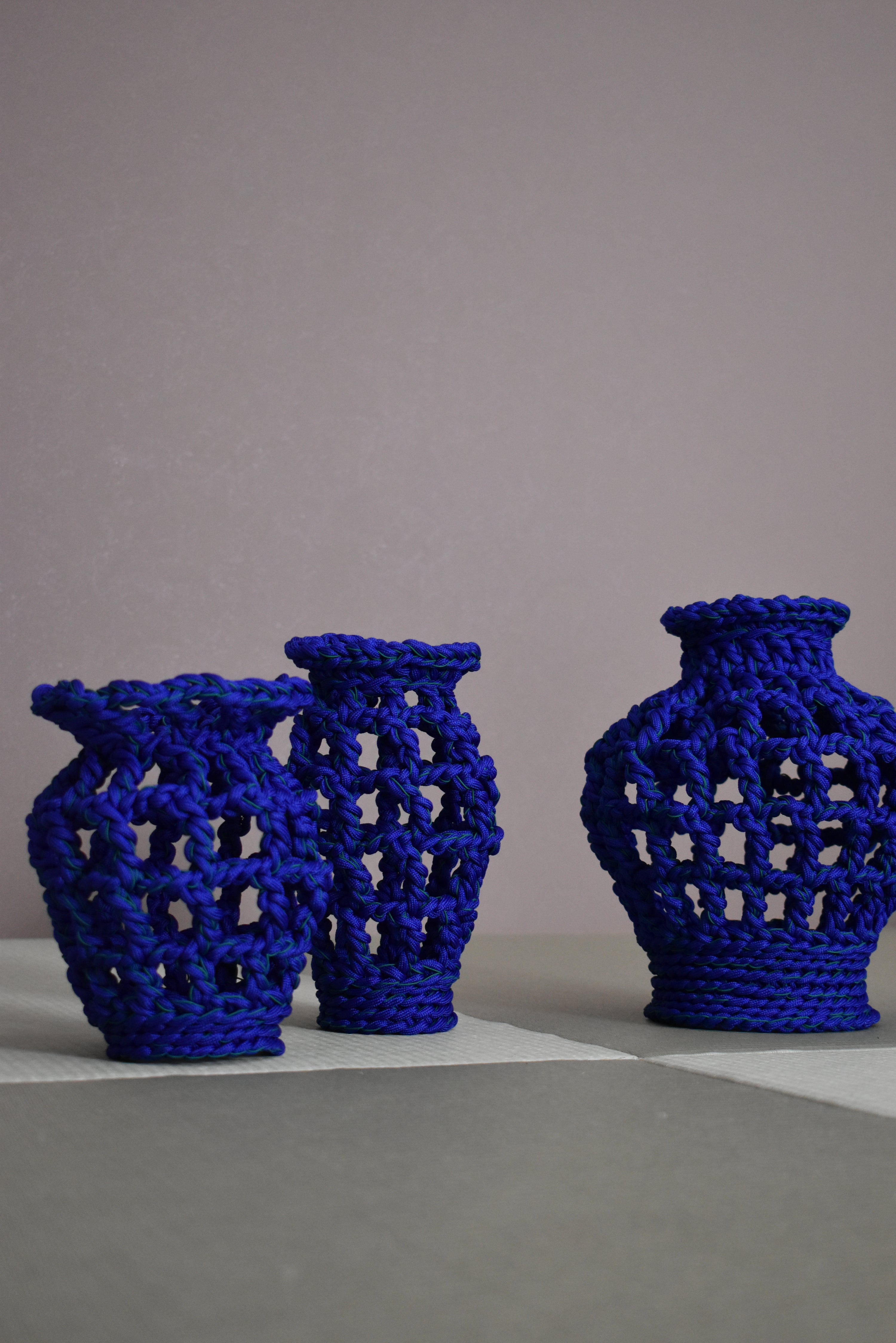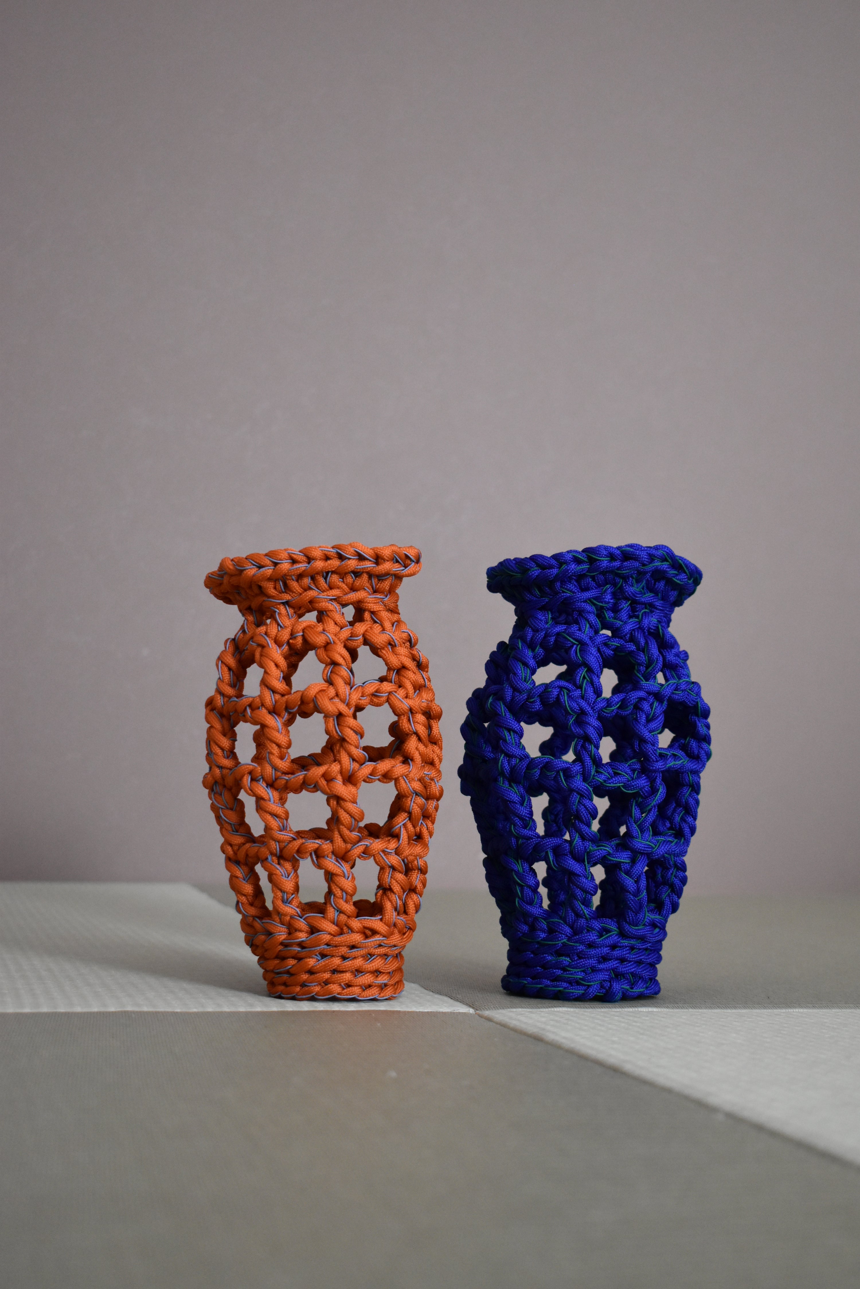 自立する硬さを保ちつつ柔らかな壺に編立てました。